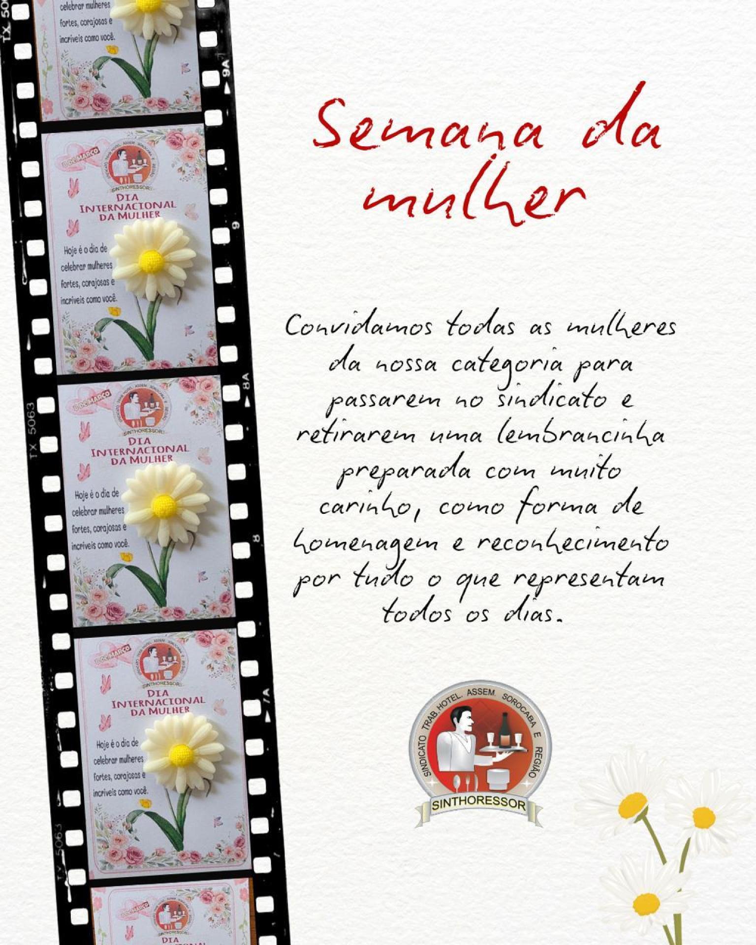 Na Semana da Mulher, queremos homenagear cada trabalhadora que constrói sua história com esforço, responsabilidade e compromisso. Preparamos uma lembrancinha especial, feita com muito carinho, como forma de reconhecimento por tudo o que vocês representam Passe no ...